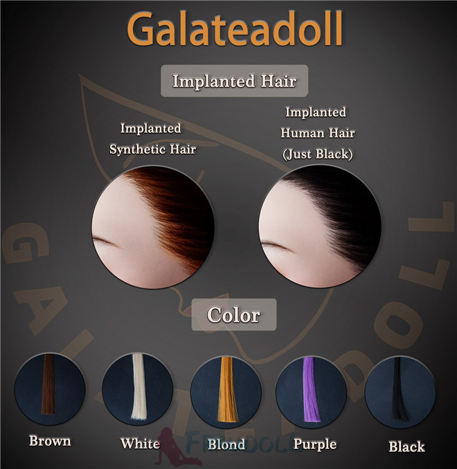 Galatea Sex Doll bietet zwei Haaroptionen: implantierte Haare und Perücken. Perücken sind kostenlos, und Sie können aus 7 verschiedenen Stilen wählen. Implantierte Haare kosten zusätzlich.