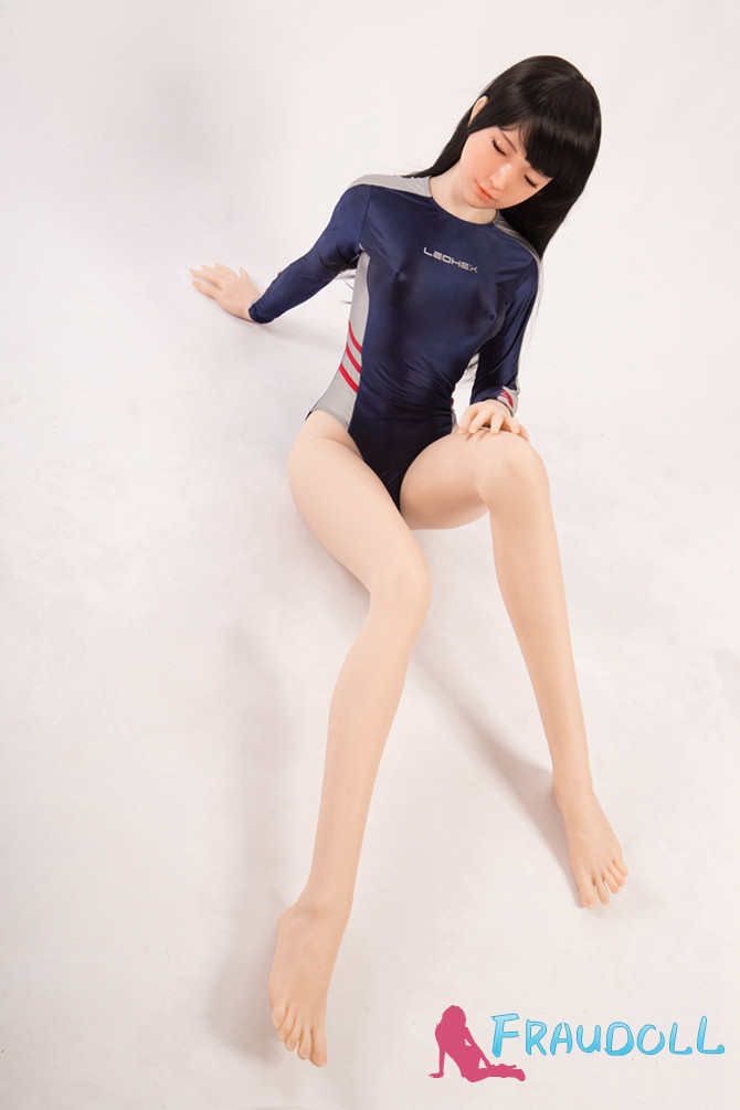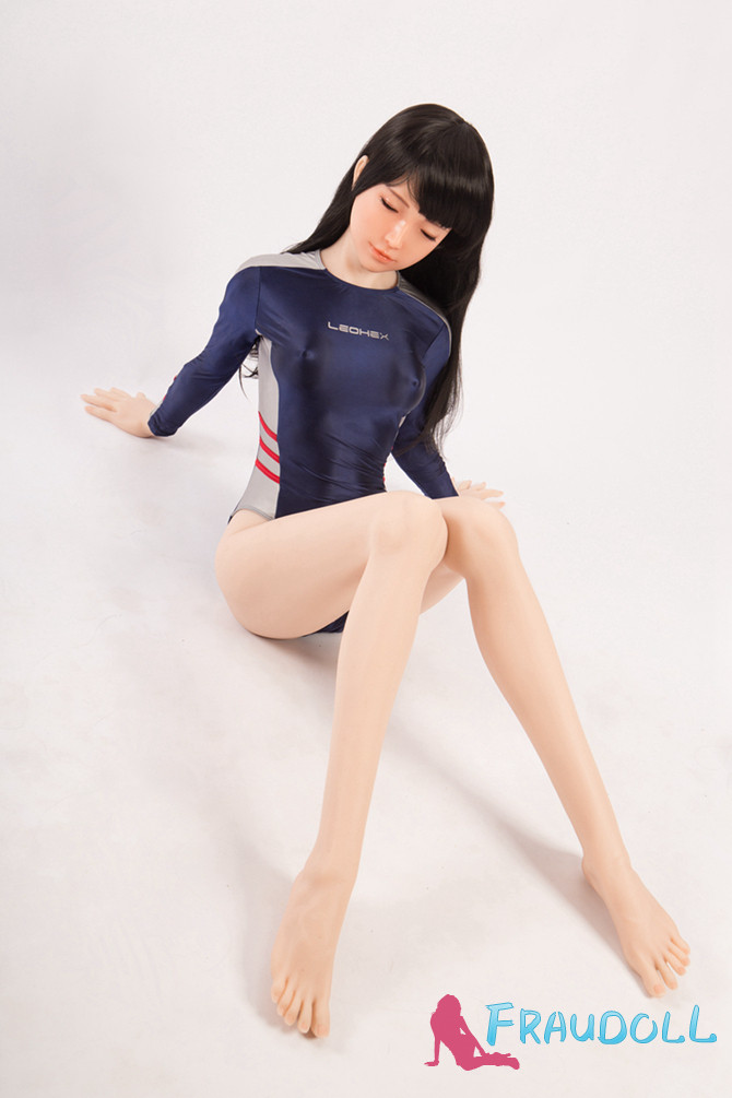 24# Mnoee 160cm B-Cup Geschlossenen Augen Sanhui Doll Silikon Liebespuppe mit Schwarzem Haar und